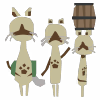 - Im Update von Animal Crossing: New Leaf taucht der Felyne ebenfalls wieder als RV-Bewohner auf, indem ein Amiibo von Lute, Sophie, Navirou, Cheval, Dan oder Avinia gescannt wird. Zusätzlich zu den Möbeln von Happy Home Designer wurde noch eine Maske und eine Figur auf Navirou basierend hinzugefügt.