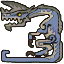 Ein fleischfressender Vogelwyvern, bekannt für die hervorstehenden Kämme an seinem Schädel und die bläulich weiße Haut, die an das Leben in Schneegebieten angepasst ist. Großbaggi sind listig; sie befehlen anderen Baggi, ihre Beute zu umzingeln und diese mit einer beruhigenden Flüssigkeit zu betäuben.