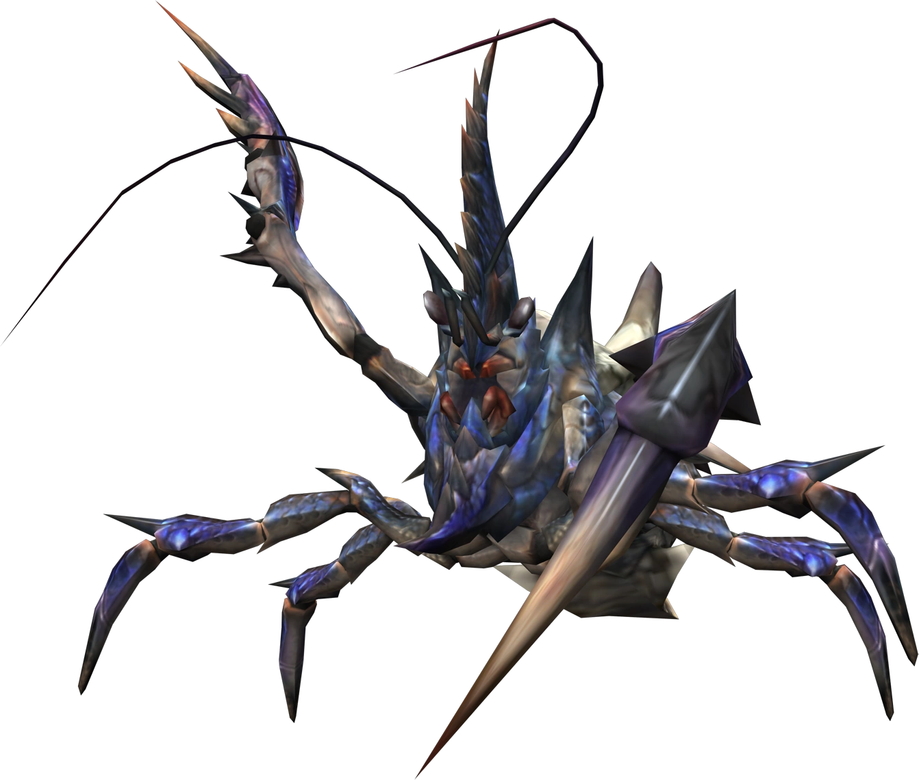 Er trägt meist einen Graviosschädel auf dem Rücken, manchmal aber auch einen gewöhnlichen Wyvernschädel, der etwas dem des Lavasioths ähnelt, oder ein riesiges Schneckenhaus. Wenn er wütend wird, klappen sich seine eingezogenen Scheren aus, mit denen er auch an Decken laufen kann. Seine Reichweite wird so enorm vergrößert.