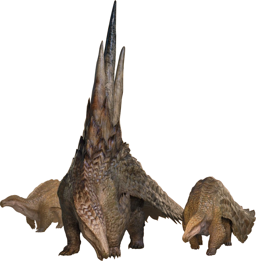 Estos monstruos cuadrúpedos se asemejan a pangolines, su cuerpo está cubierto de escamas marrones y tienen una cola casi tan grande como su cuerpo. Los machos tienen tres grandes espinas sobre el lomo.