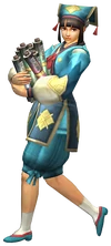 - Chica del gong (敲锣娘). Estas empleadas se encargan de tocar el gong cuando un cazador parte a una misión o cuando desee reunir a otros cazadores. Para ello utilizan un martillo llamado Portomarca.