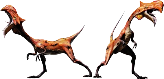 Hostil: ★★ Especie de pequeño carnívoro de color rojo vivo que habita las zonas subtropicales. Las bolsas de su garganta acumulan un poderoso veneno que agota lentamente la salud de la presa.