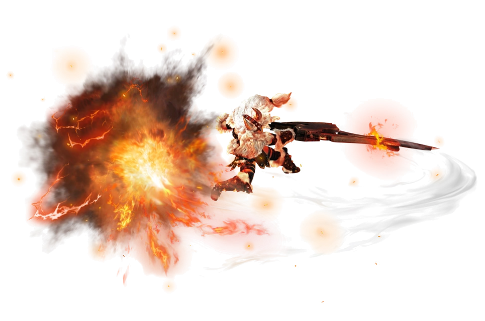 Vistosa técnica de caza que revienta el suelo. Disparas al suelo mientras saltas hacia atrás. La onda expansiva te aleja aún más. Funciona como ataque valioso y como técnica evasiva. | I | Aldea 3★ "Un berrinche con colmillos" o Gremio 3★ "Un canalla sorprendente" |