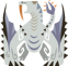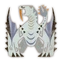 Barioth is a quadrupedal Flying Wyvern, with a head that resembles a saber-toothed cat. Its body is mostly covered with icy white plates and spikes along its neck, spine, and tail. Its face features two massive, curved tusks of an amber coloration. Its forelegs are longer and more powerful than its back legs, with deadly spikes along its wings, as well as three large claws. Barioth's tail is forked and ridged with spikes