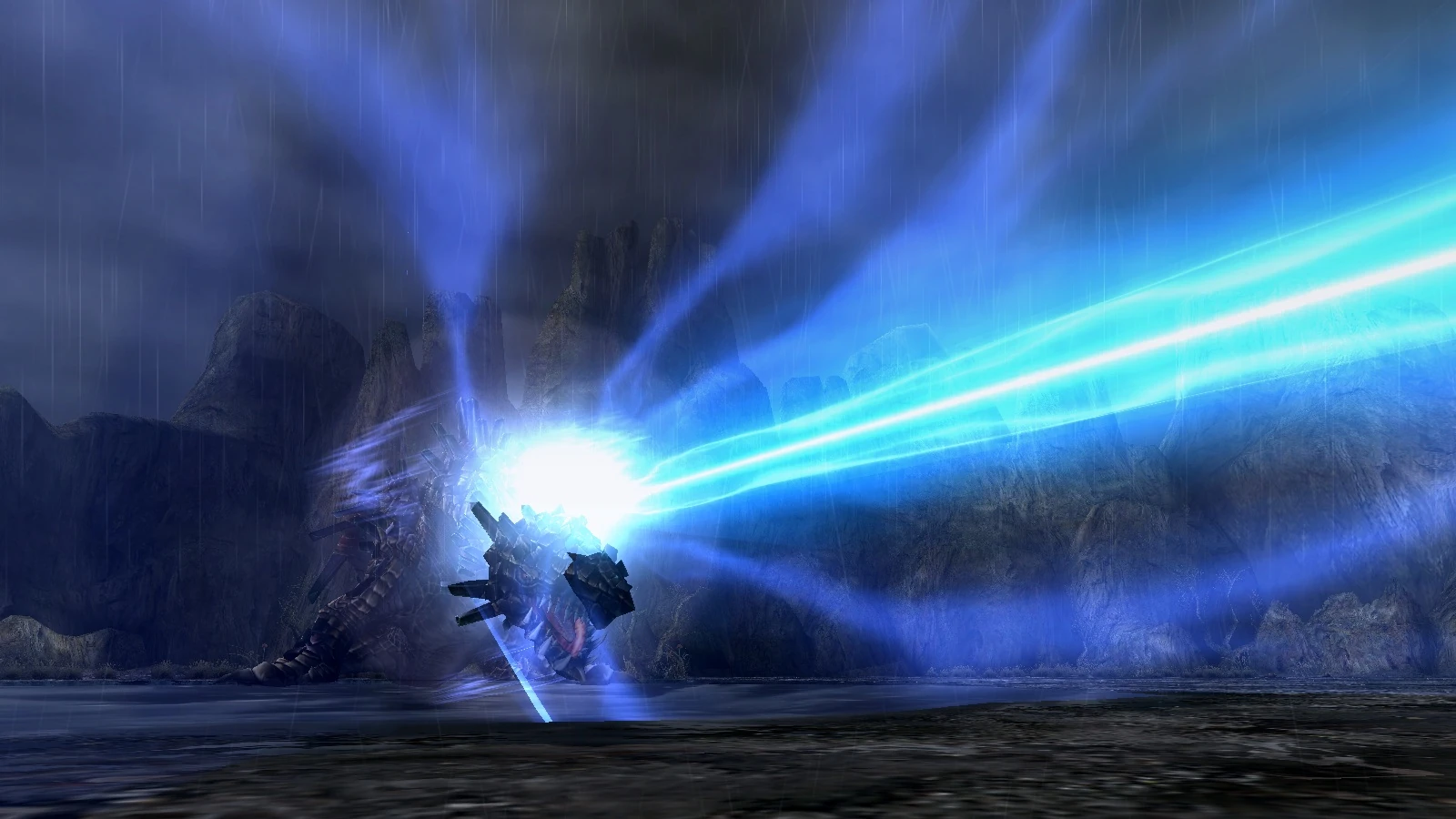 | Water (Japanese 水) is an element that is extremely abundant in nature. Weapons and armor can be imbued with the element of water. In Monster Hunter 3, being hit by a water attributed attack will inflict Waterblight, which lowers the rate at which stamina recovers. | |
