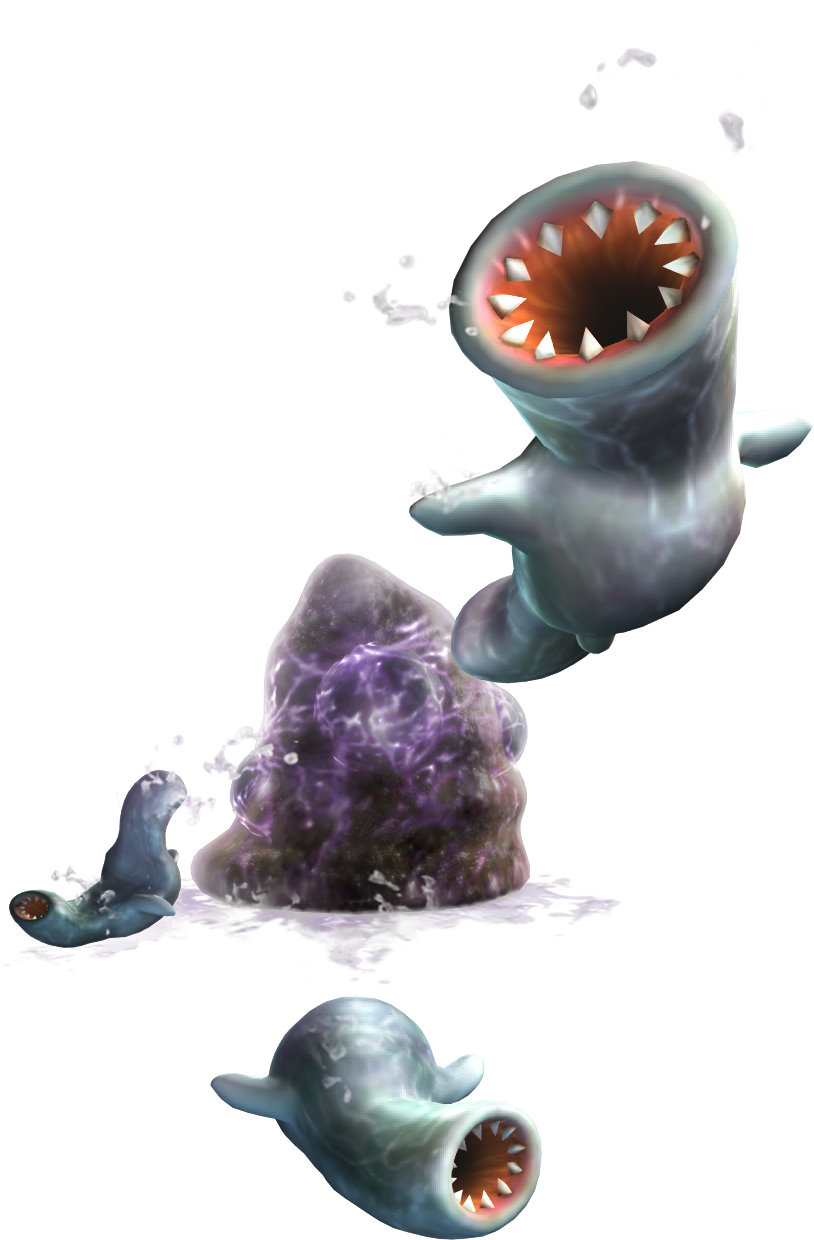 Giggi are not exactly aggressive but they are gluttonous, trying to chase down and leech onto anything they deem as a prey item, though they do flee upon exposure to light like that from a torch.