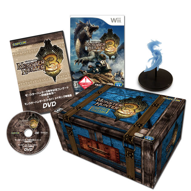 Finally, Monster Hunter 3 Limited Edition, that includes a promotional DVD, a monster head figure and a glow-in-the-dark Lagiacrus figure. This limited edition is only available at e-Capcom.
