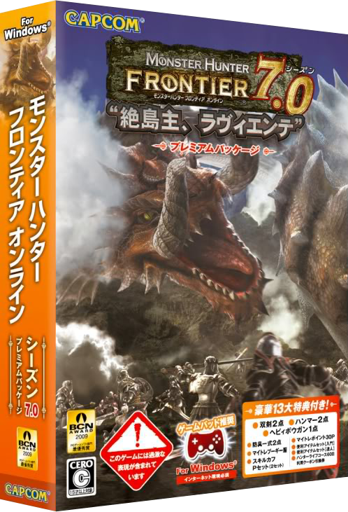 Monster Hunter Frontier is an online MMORPG on the PC and Xbox 360 with a great amount of new weapons, quests, armor, and monsters. The game will continue to expand with new content added through patches. There is currently a Japanese, Korean and Chinese (Taiwan and Macau) version of Frontier. The game has a built-in IP blocker that prevents IP addresses outside of Japan from connecting to the server, but it is still possible for residents in other countries to connect. The Korean Frontier requires a KSSN (Korean Social Security Number) in order to play but it does not carry the same monthly fee as the Japanese version.
