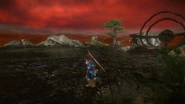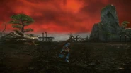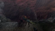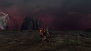 The Sacred Pinnacle is an area introduced in Monster Hunter Portable 3rd, located high in the mountains surrounding Yukumo Village. The sky in this area is blood red, with swirls of grey and purple. Roaring, gale-force winds can be heard at all times.