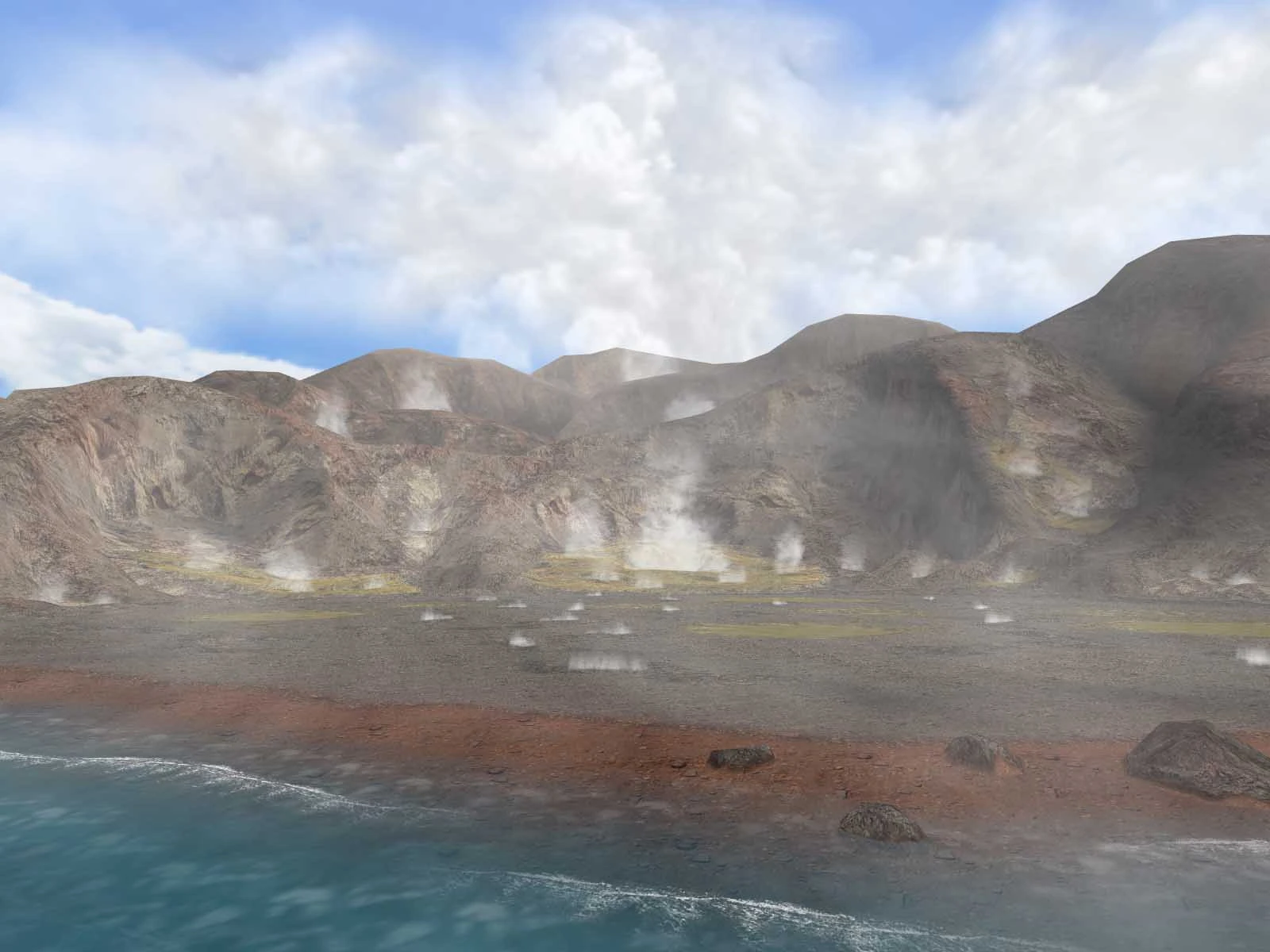 The Solitude Island (絶島) is a new area introduced in Monster Hunter Frontier Season 7.0. It is comprised by three extremely remote islands being inhabited only by Laviente and Violent Laviente, and are characterized by multiple signs of volcanic activity such as geysers and acid pools. Beyond the Island stretches an ocean. Travel to this area is by Caravan airship.