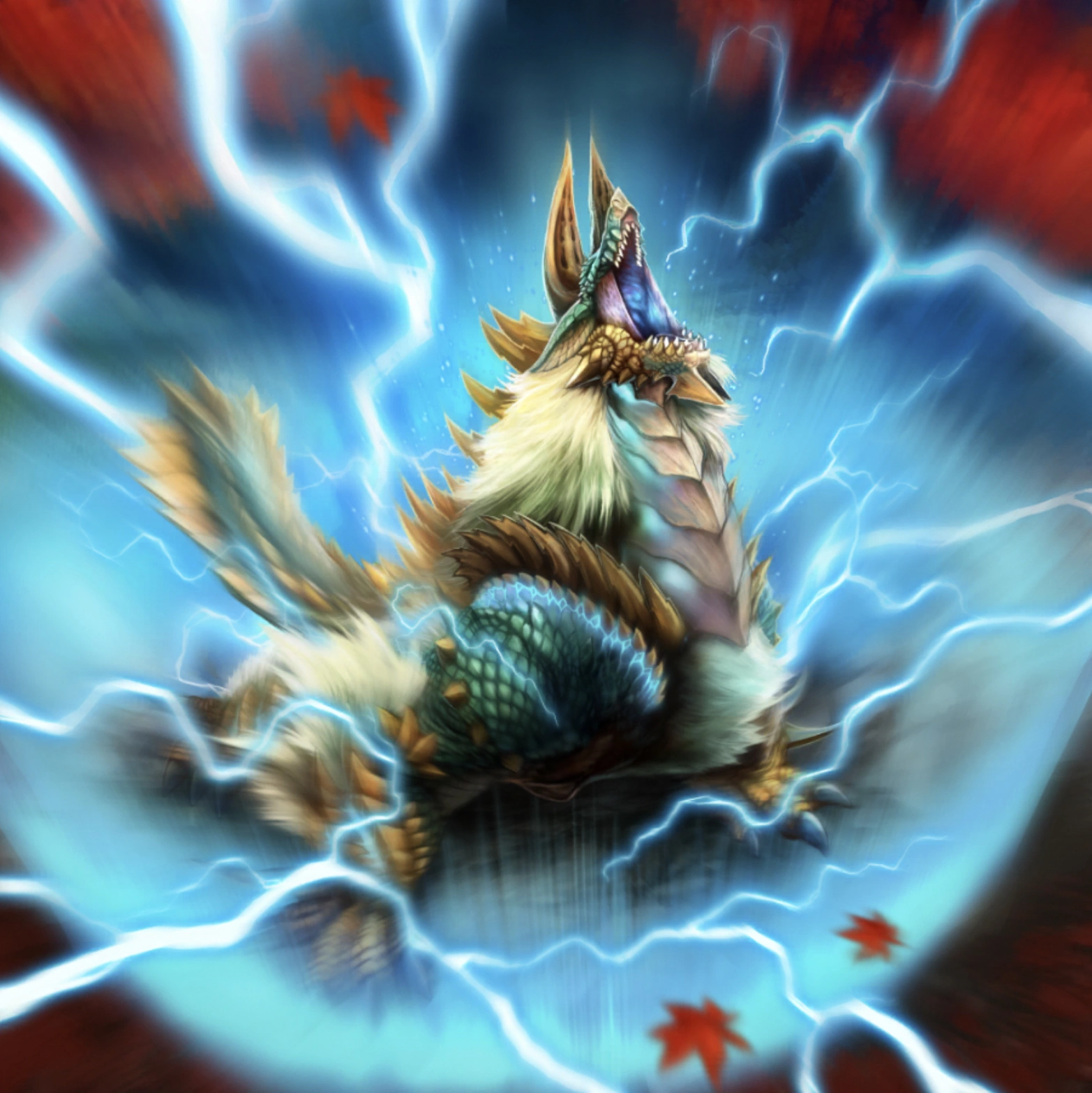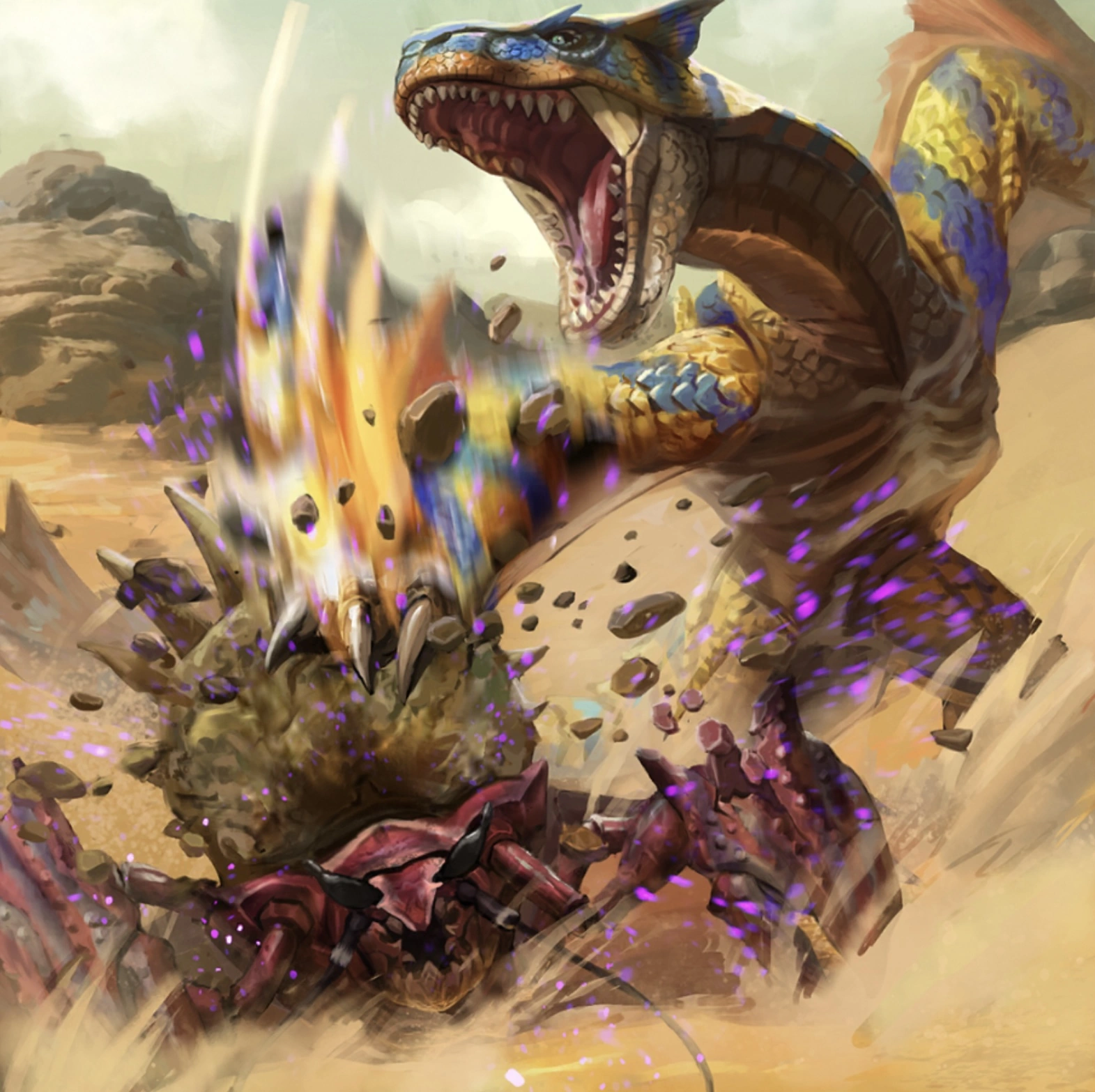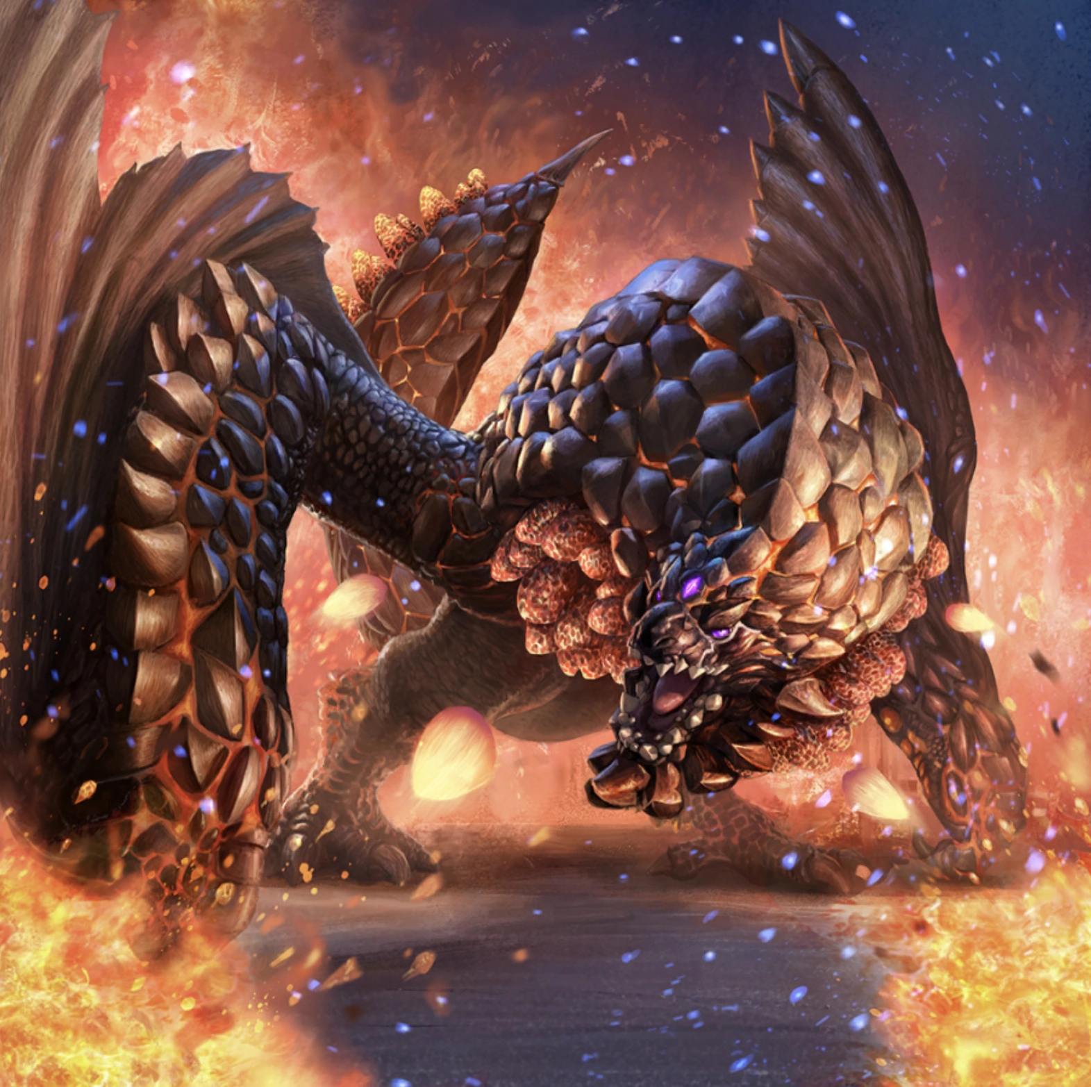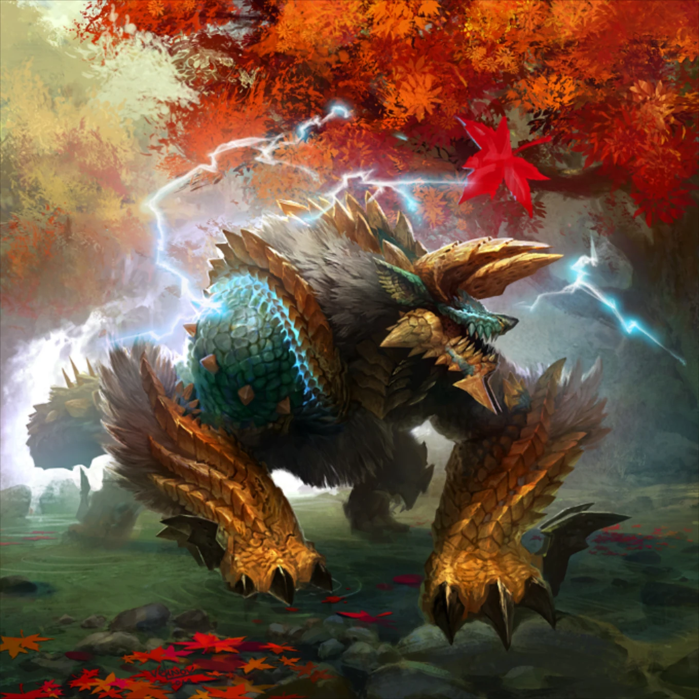 | Defiler Nergigante | Nergigante (& Alatreon ice shards? The two fight in this card set) |