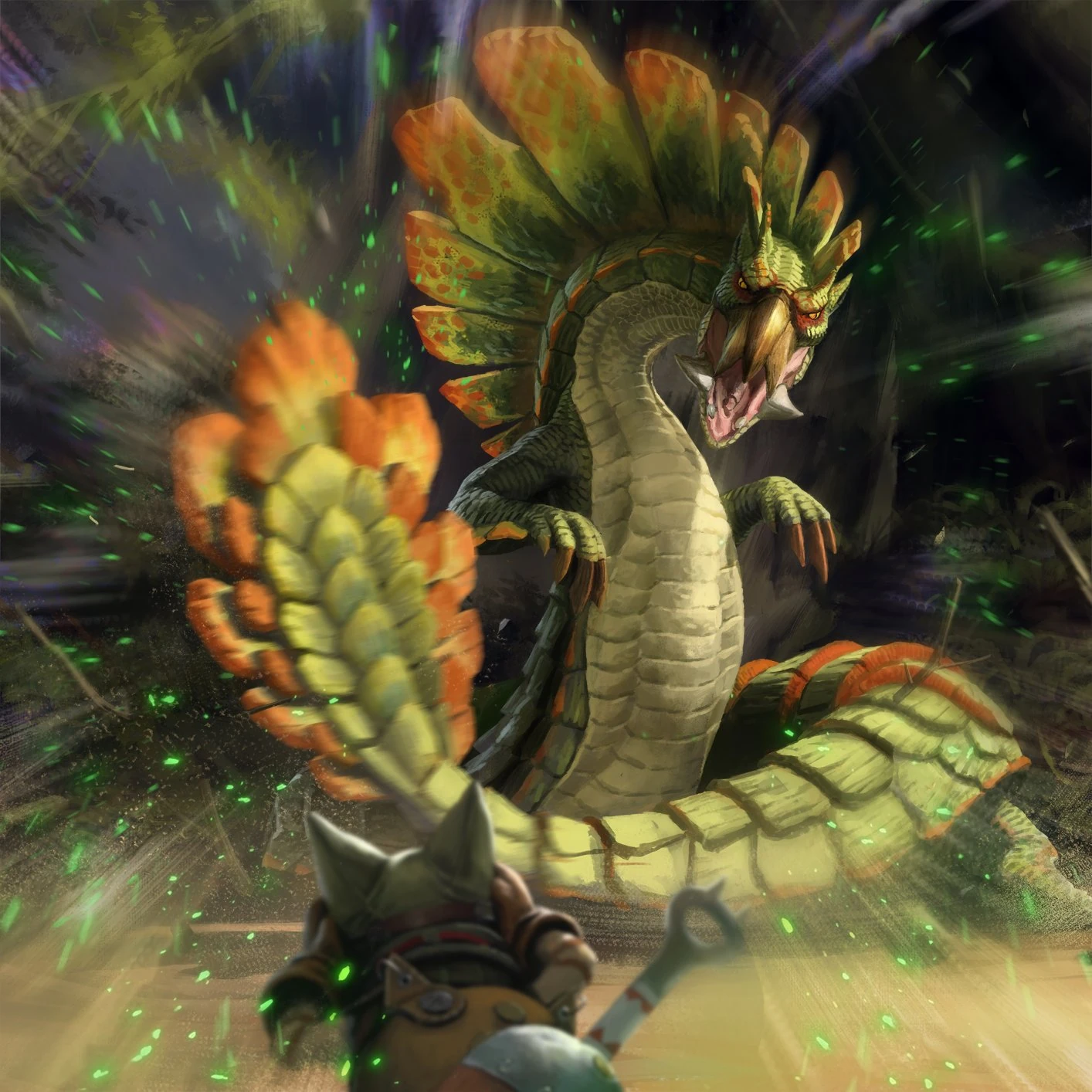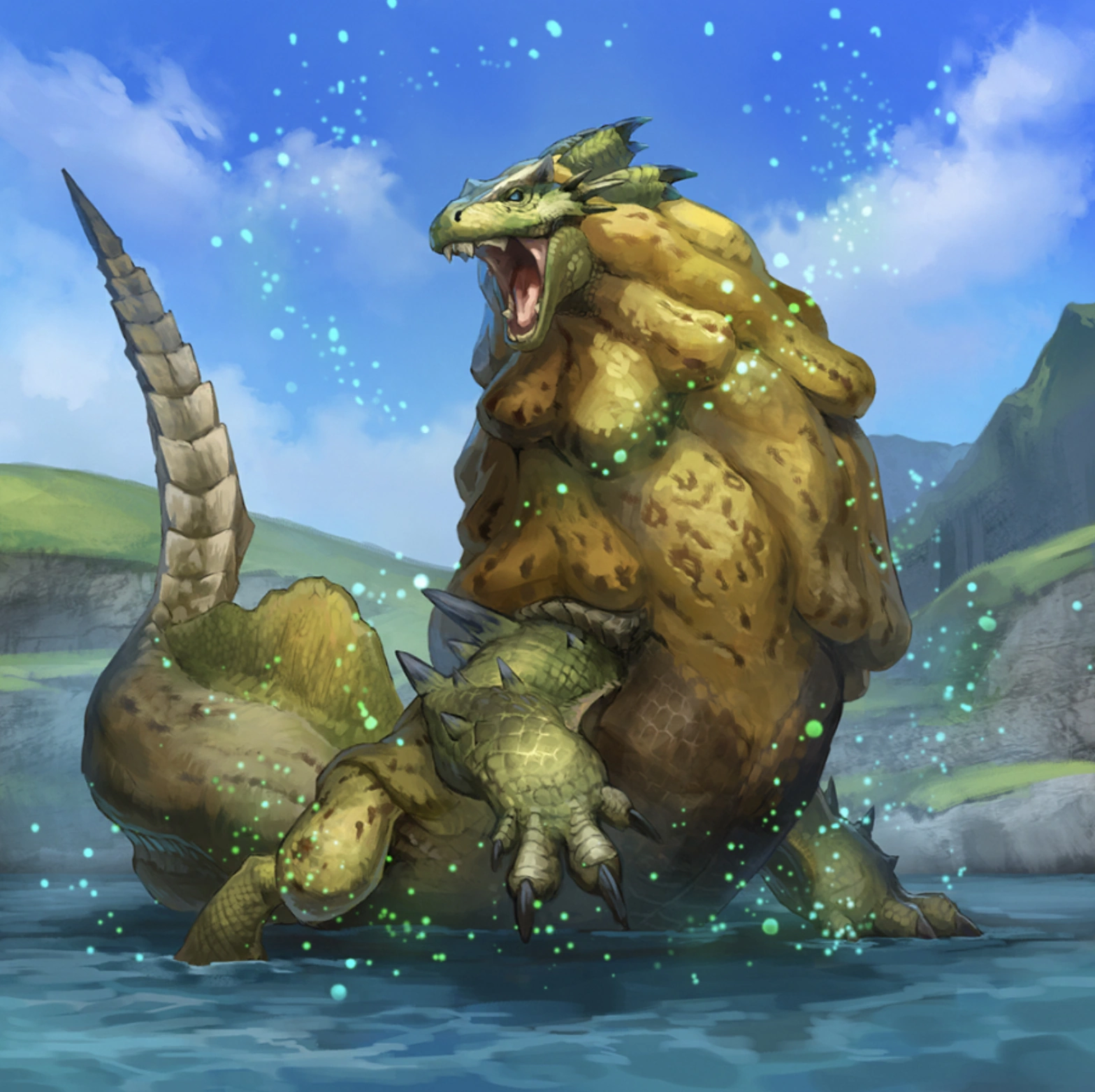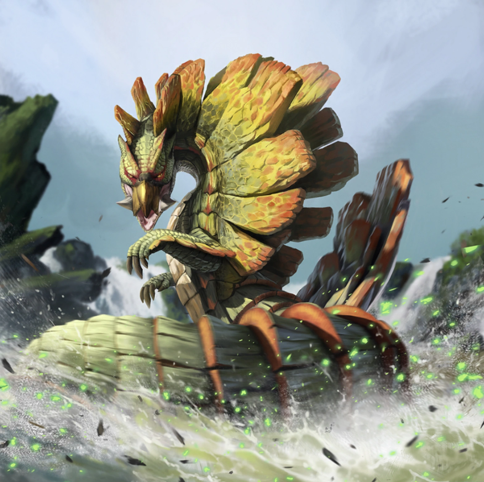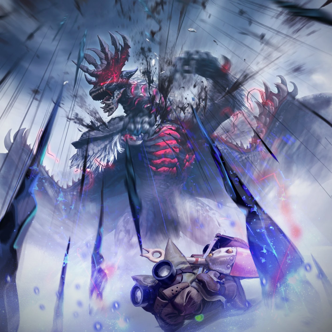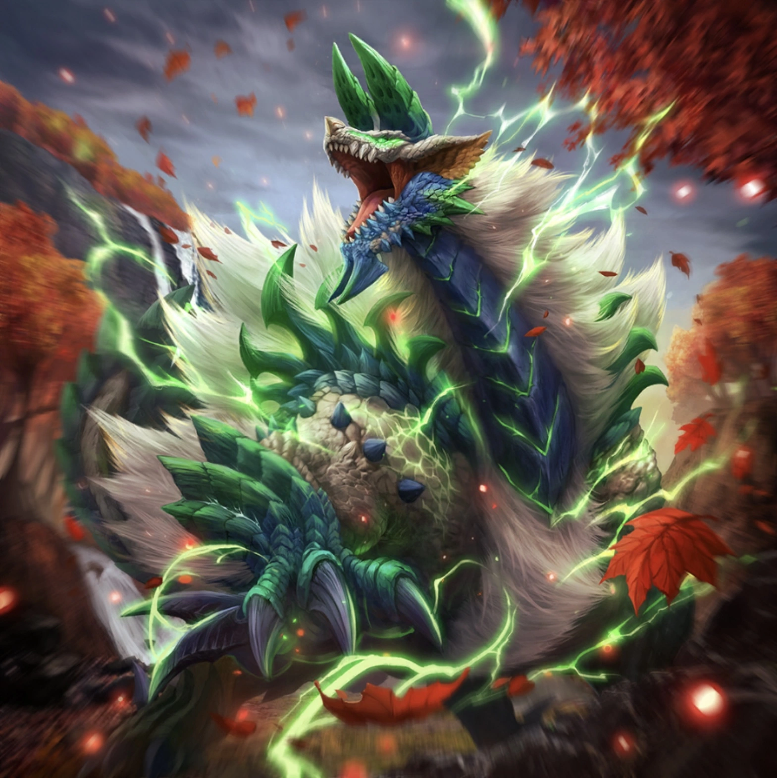 | Defiler Nergigante | Nergigante (& Alatreon ice shards? The two fight in this card set) |