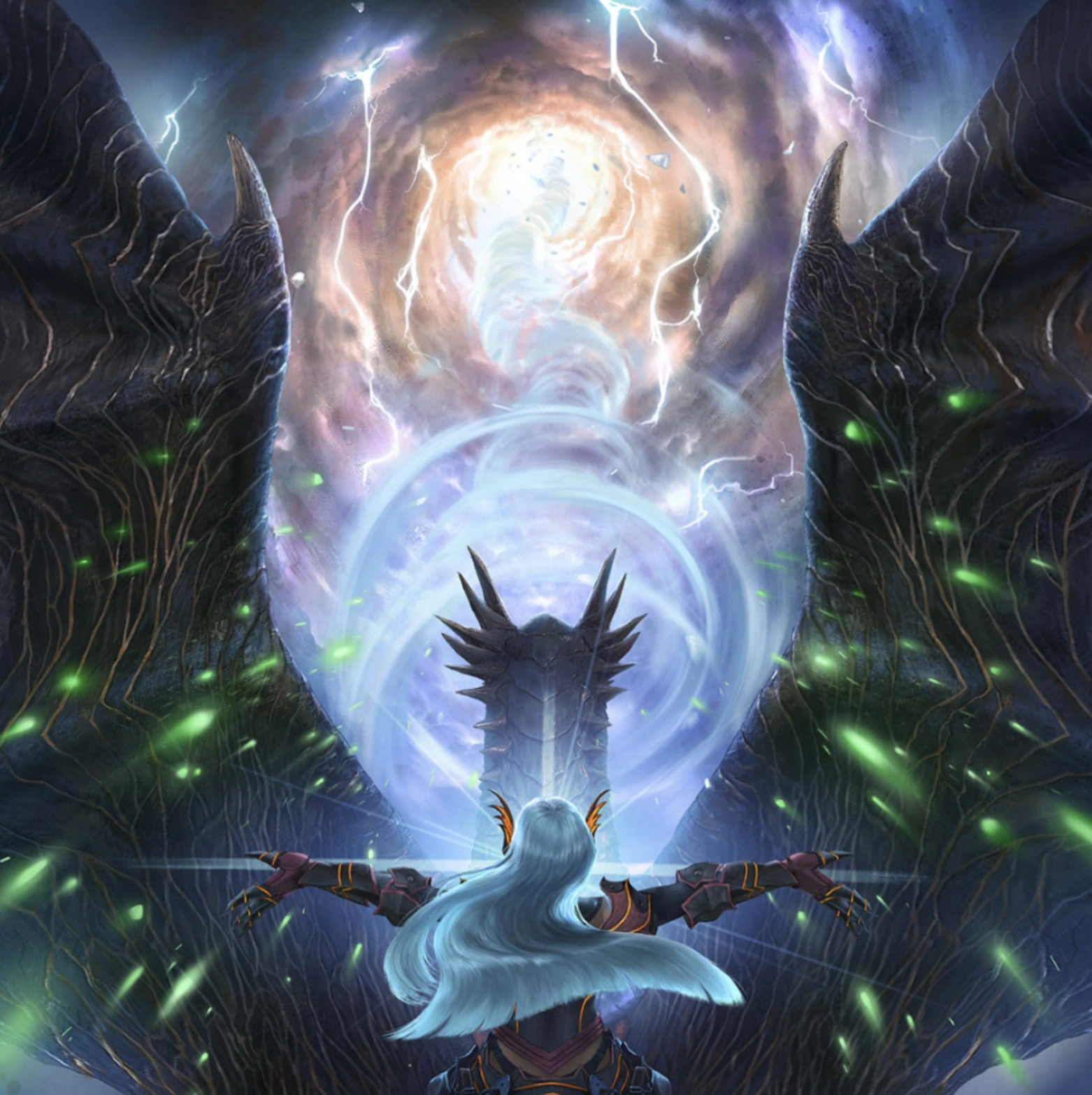 The blazing black dragon shook the skies with a roar more terrible than any other, and the light itself seemed to blur. In that moment, red lightning coursed through its scales as the elements ran wild. | Type: Green Unit Cost: 8 MP Stats: 2 Attack/8 HP Effects: Spillover Attacking: Inflict Halt on 1 random enemy with an MP cost of 5 or less for 5 seconds. Death: Gain +2 MP. Unleash: 15 Gain +2 Attack, then deal damage to all enemy units equal to this unit's Attack. Set No: DTL 032 |