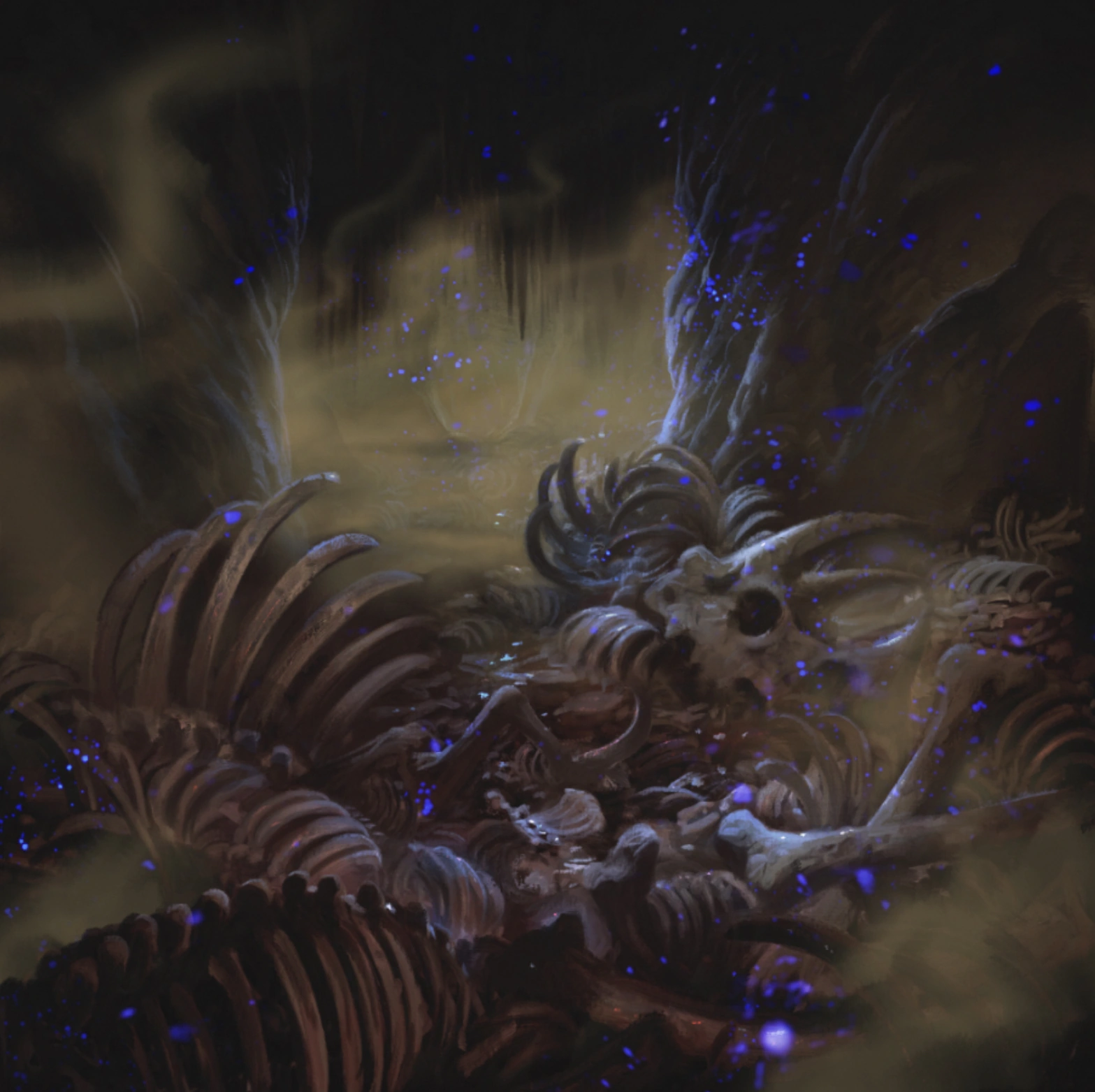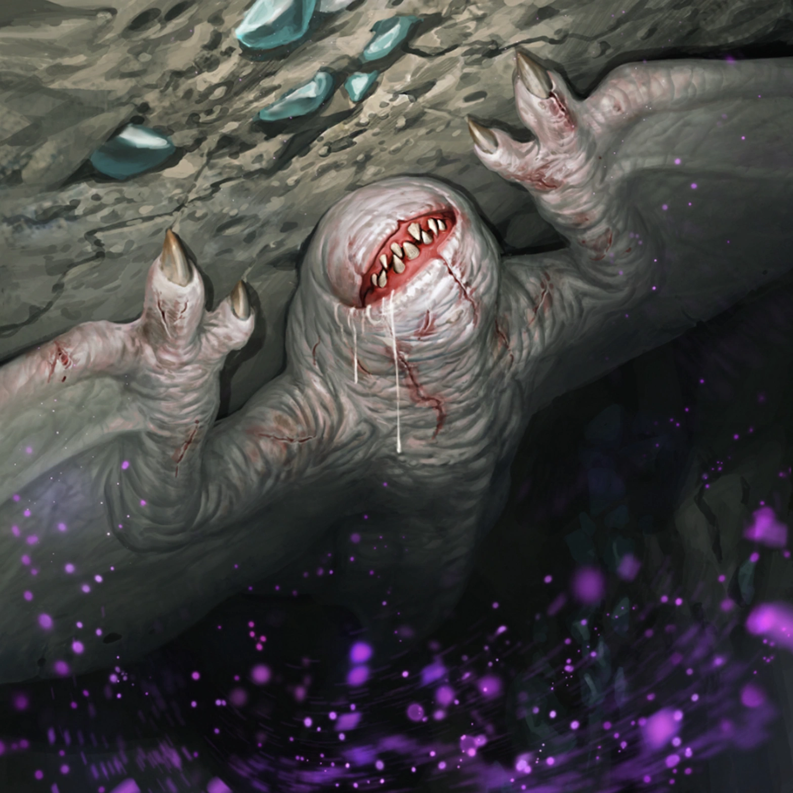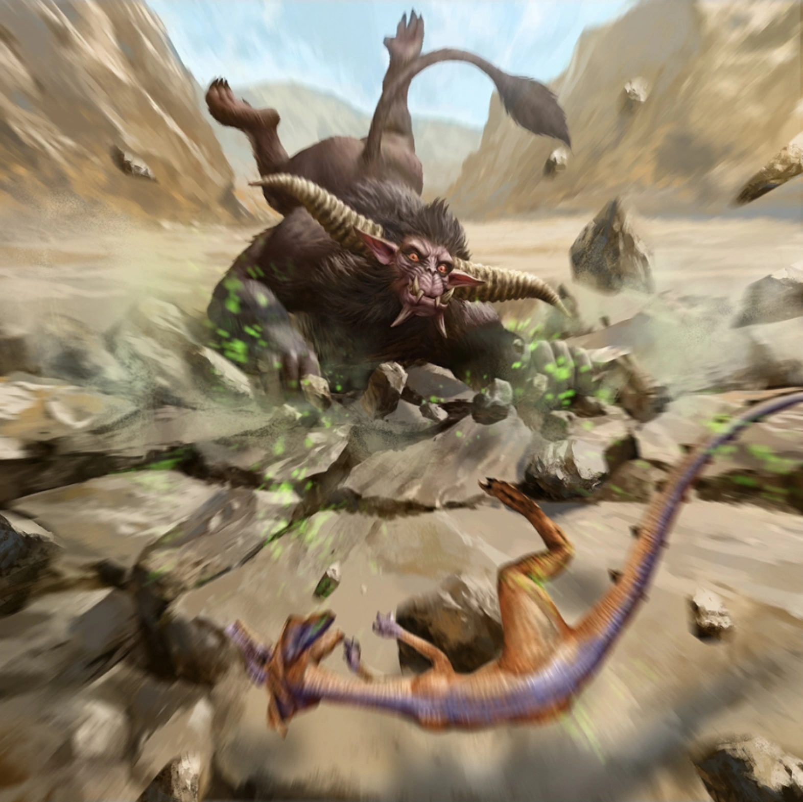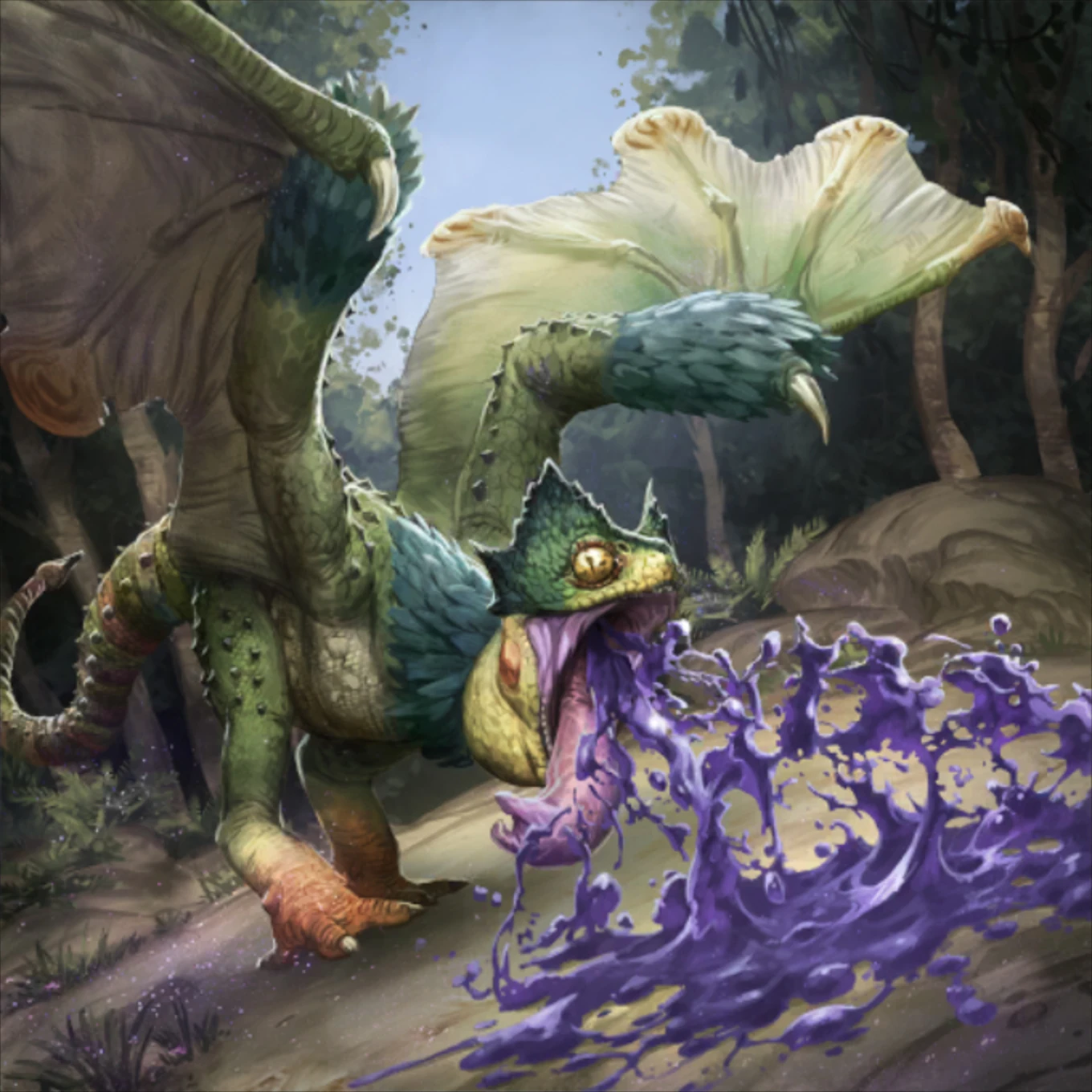 Bathed in purple light, the single horn that gave the wyvern power over life and death emerged from the dunes. The billowing sands blasted a hapless body skewered upon it. | Type: Green Action Cost: 2 MP Effects: Deal damage equal to the number of different Tribes among all friendly units on the board +2 to 1 enemy unit. Deal 2 damage to your Hero. Set No: DTL 034 |