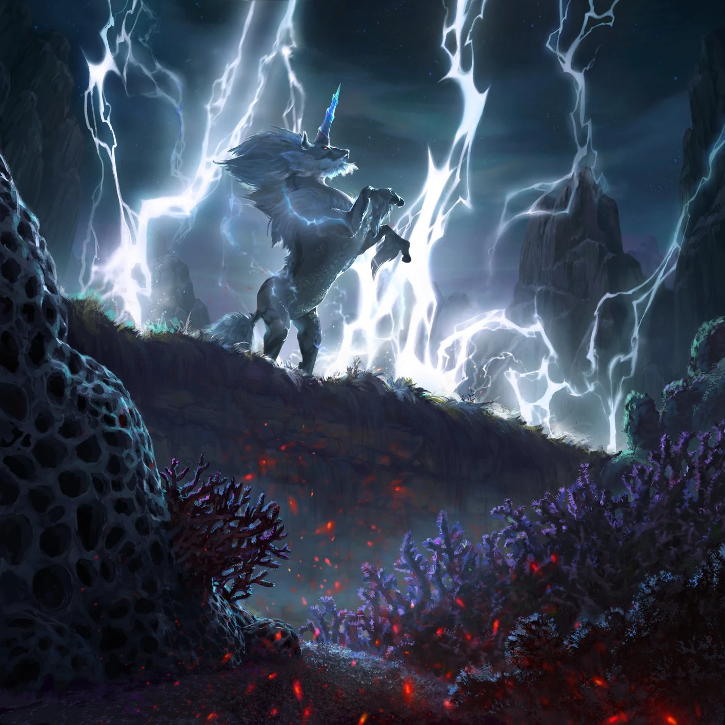 Glaring at its target, the monster spread its wings and slowly raised its horn, lit by the purple glow of the stone in its forehead. The light grew stronger, as if urging the creature to charge. | Type: Green Unit Cost: 3 MP Stats: 3 Attack/4 HP Effects: Faith This unit cannot block enemy attacks. When played: If there are at least 3 different Tribes among friendly units, gain Shield. Set No: DTL 021 |