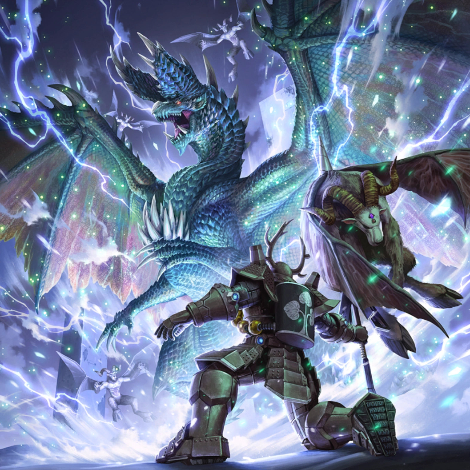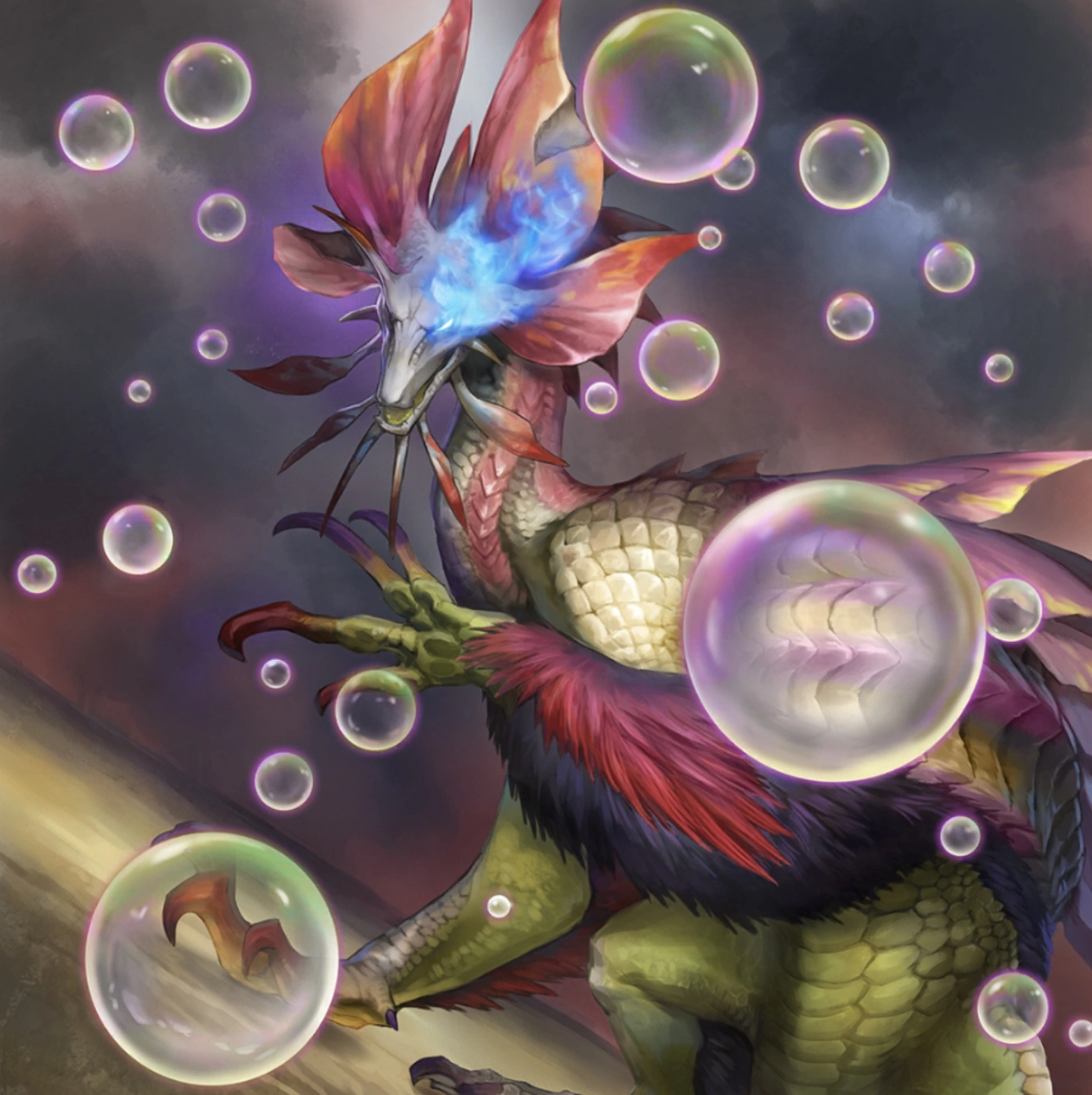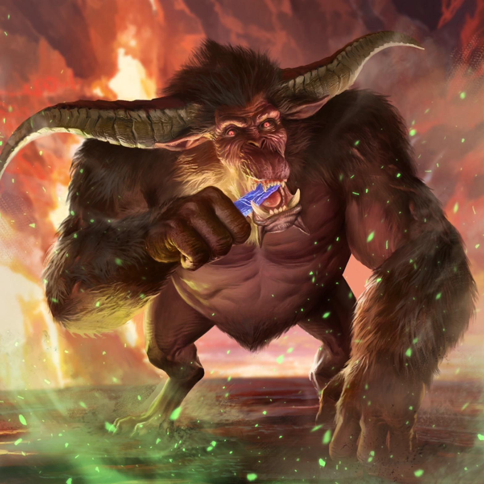 Explosive scales drop one after another, covering the ground in blazing flames, and its forehead gives off a purple glow. In preparation for the coming age of light, it purifies the decaying world of old in a baptism by fire. | Type: Black Unit Cost: 6 MP Stats: 3 Attack/5 HP Effects: Rush Faith Attacking: Destroy 1 other random friendly unit, then destroy 1 random enemy with an MP cost of 5 or less. When a friendly unit other than this unit dies: Gain +1 MP. Set No: BOR 071 |