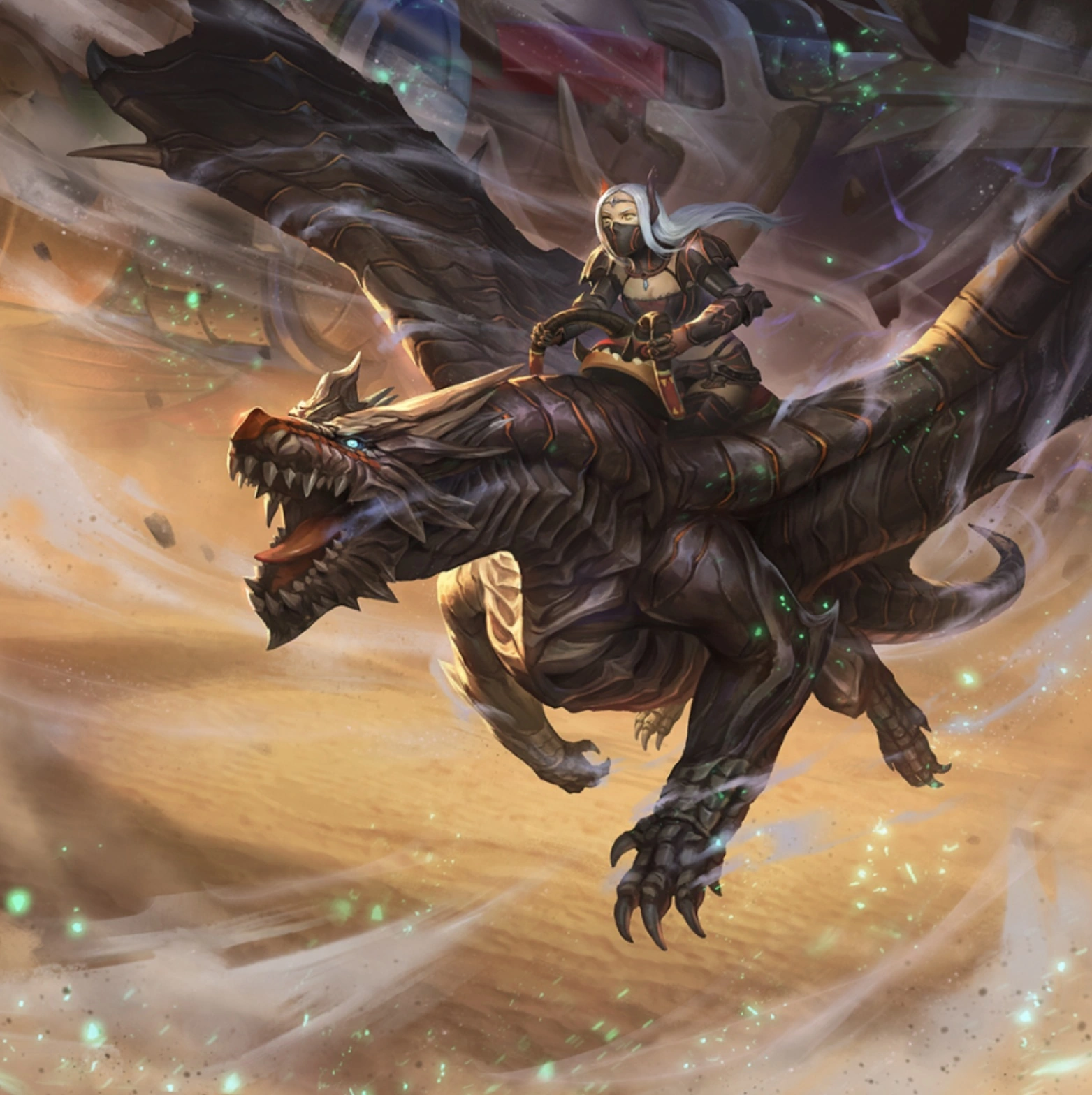 Only those who ride elder dragons can do it. And now is the time for those who have the power to fulfill their responsibilities. Dive into the sandstorm. Guide the ship. | Type: Green Unit Cost: 6 MP Stats: 2 Attack/7 HP Effects: Flight Quest: This unit's HP increases. Lv. 2: Give all friendly units +1 Attack. Lv. 3: Return 1 random enemy unit with 5 or less HP to their deck. Set No: BOR 085 |