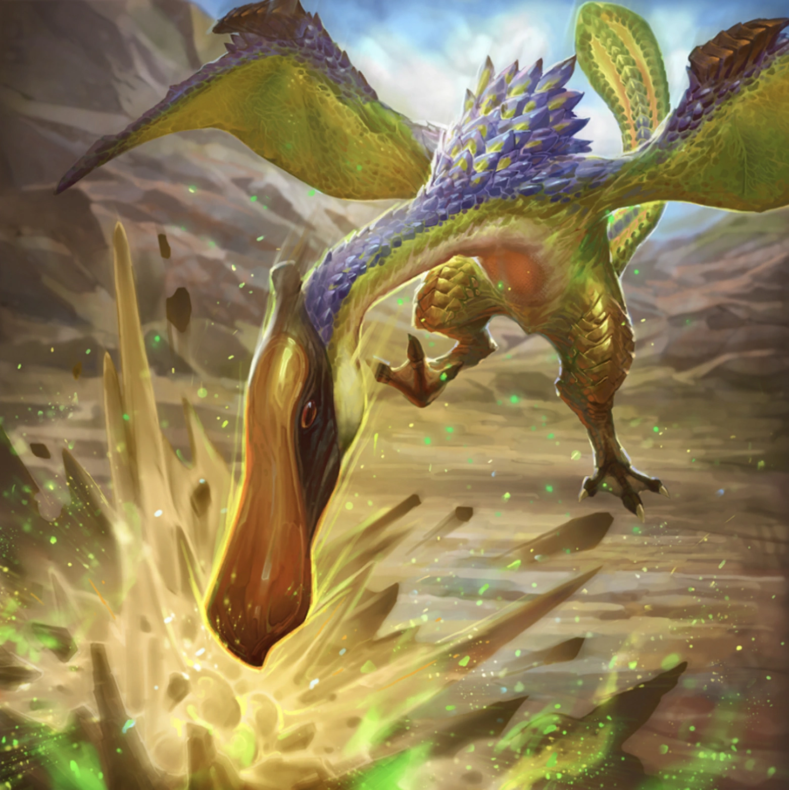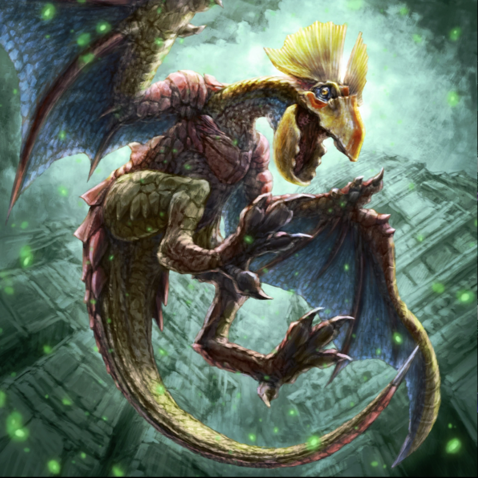 Though this monstrous bird may pose little threat, the fact remains that it is still a wyvern at heart. | Type: Green Unit Cost: 4 MP Stats: 2 Attack/4 HP Effects: Flight Set No: X 003 |
