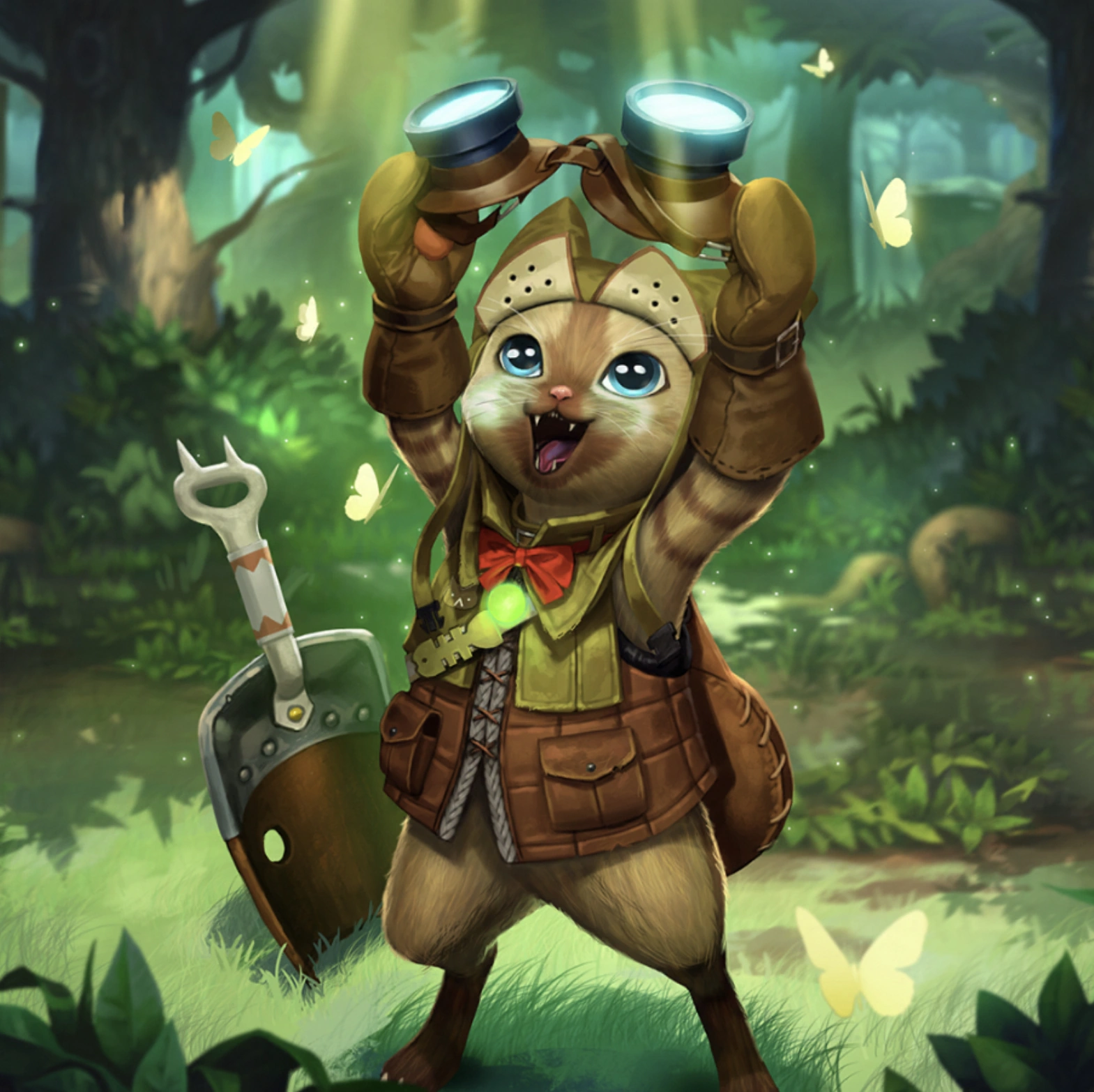 Hey, these goggles look purrfect on me! I think I've found a new treasure! What do you think? Do they suit me? | Type: Green Unit Cost: 3 MP Stats: 1 Attack/5 HP Effects: MP Boost: 20 When played: If there are at least 2 different types of Tribes among friendly units, gain Shield. Set No: FELYNE 008 |