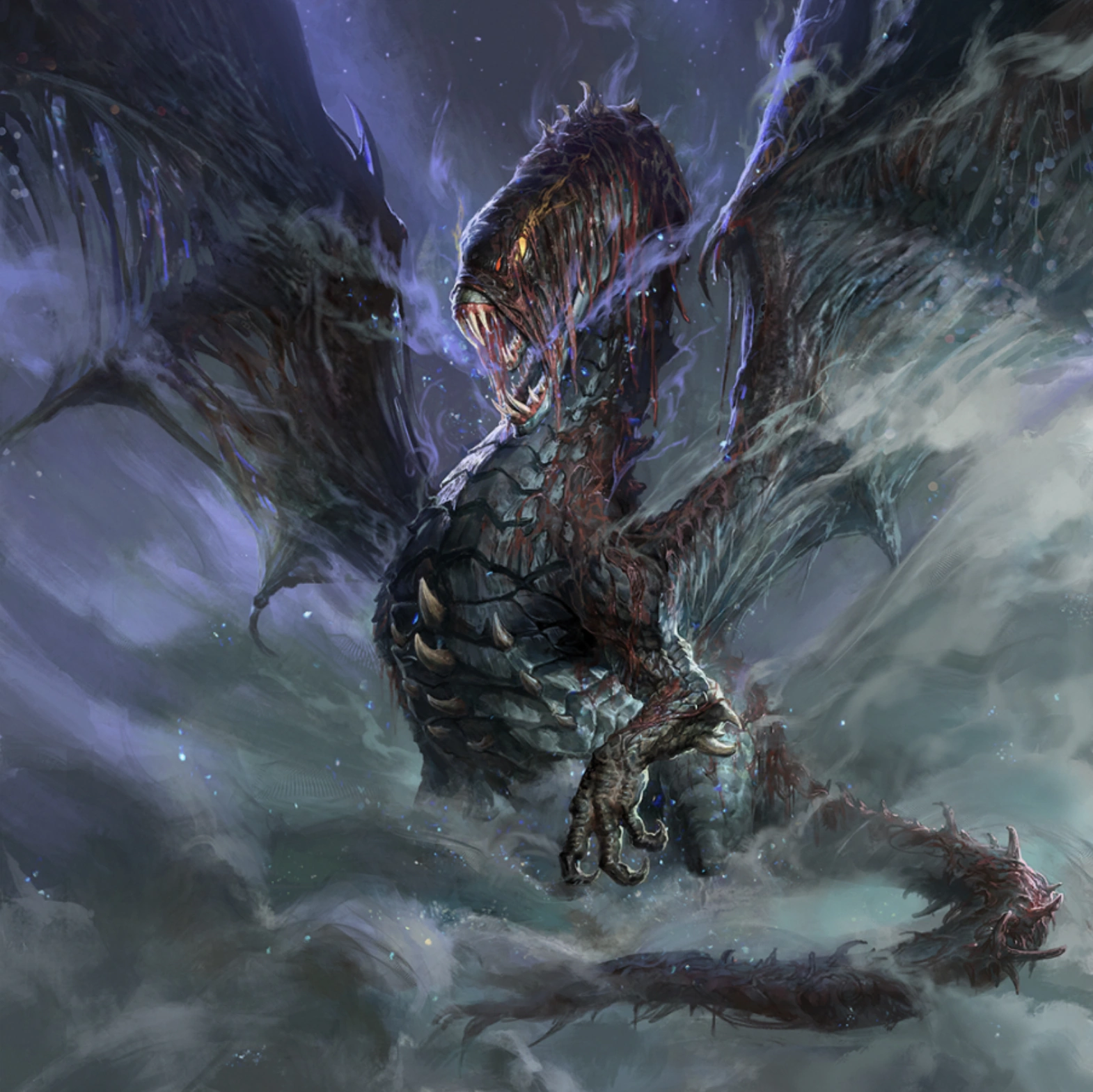 The elder dragon makes its lair among effluvium, corrupting the air and slaying all that live. | Type: Black Unit Cost: 7 MP Stats: 3 Attack/6 HP Effects: Flight Set No: NERGIGANTE 007 |