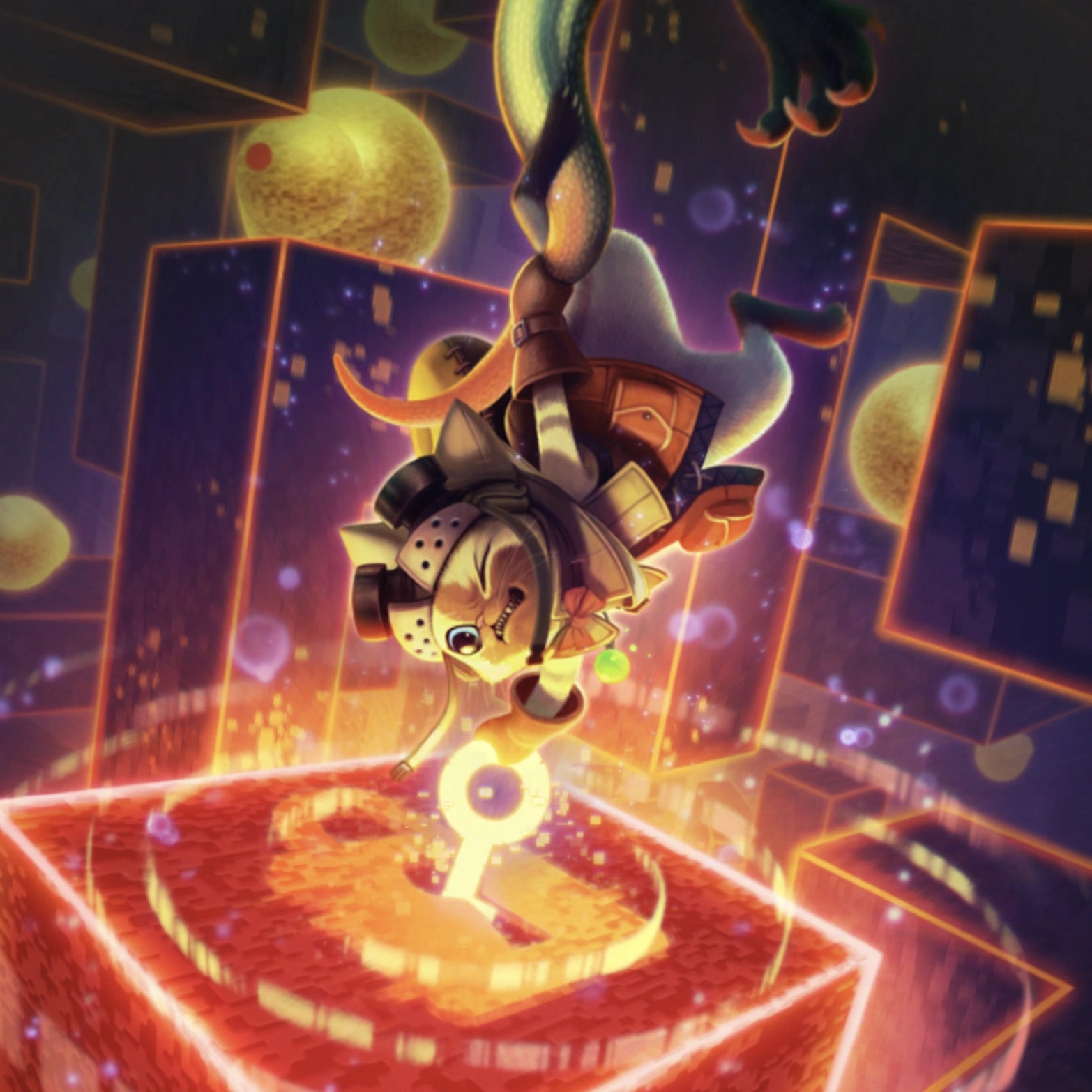Now I just need to slip this key in here, and... Whew- that was a claws call! I thought that giant eyeball thing was going to turn around! We're just a whisker away now... I've gotta stay frosty and make this quick! | Type: Purple Action Cost: 1 MP Effects: Give all friendly units "When an enemy unit inflicted with Halt dies: Gain +3/+3, then inflict Seal on self." Set No: DTL 088 |