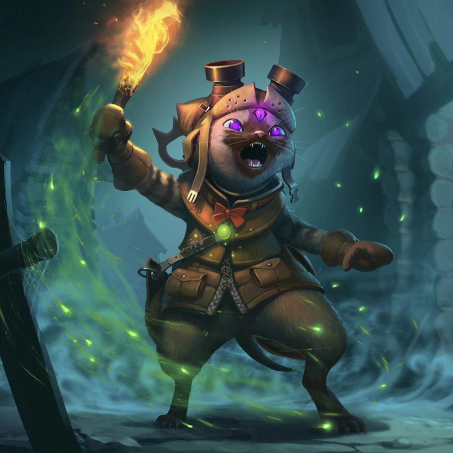 Come out, come out, wherever you are... The purrrple stone in my furhead tells me everything. There's no use hiding under cover of night, because the light of my torch reveals all! | Type: Green Unit Cost: 3 MP Stats: 1 Attack/7 HP Effects: Faith When played: Give 1 other random friendly green unit +5 HP. While on the field: Decrease your MP charge speed by 10%. Death: Destroy 1 random friendly unit with 2 Attack or more. Set No: BOR 029 |