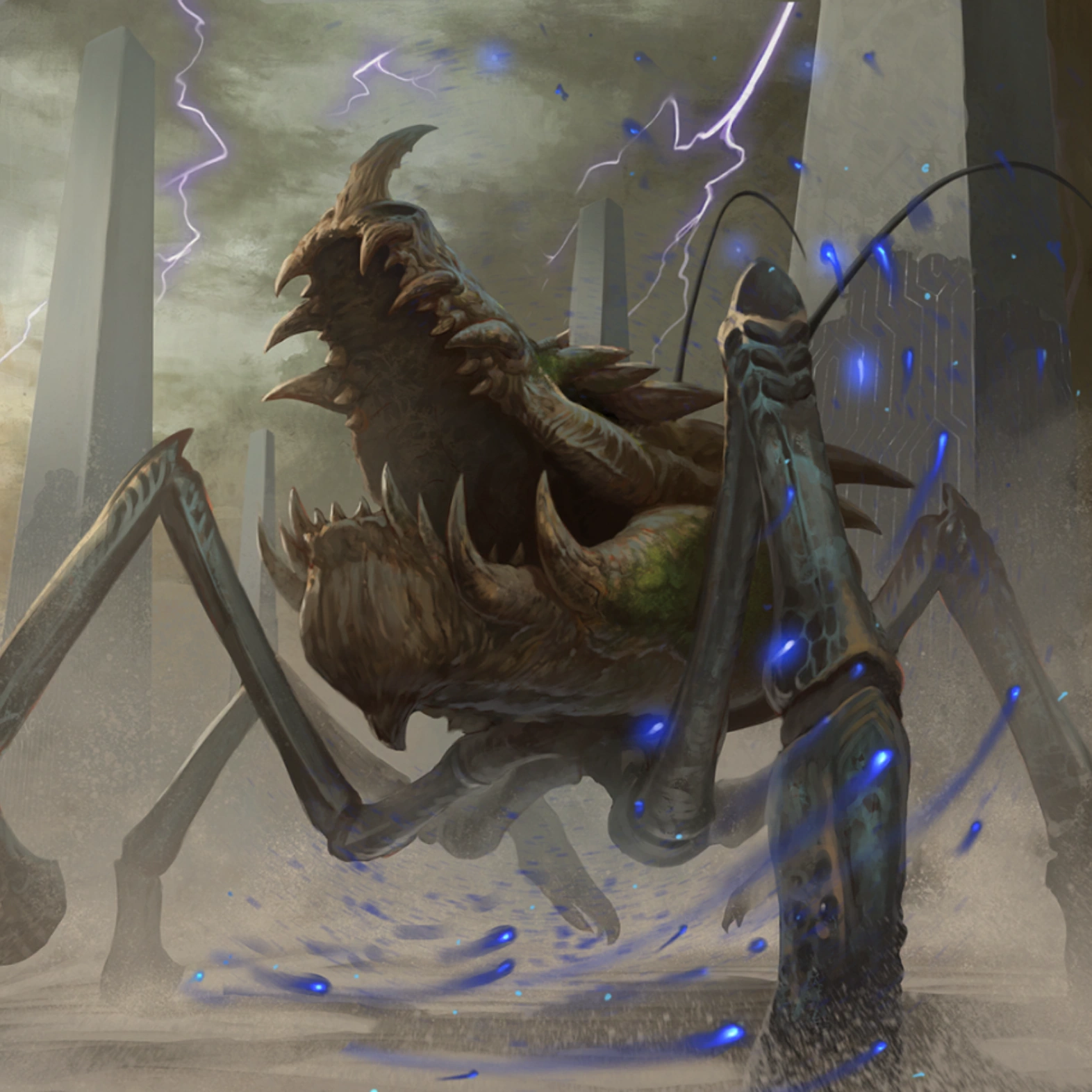 A massive shadow lumbered over the ship gliding through the desert. Shadows crossed the sands like towering gods poised to strike. The reality was no more comforting- the fortress crab was upon them. | Type: Black Action Cost: 5 MP Effects: Destroy 1 random enemy unit with an MP cost of 5 or more. Set No: DTL 074 |