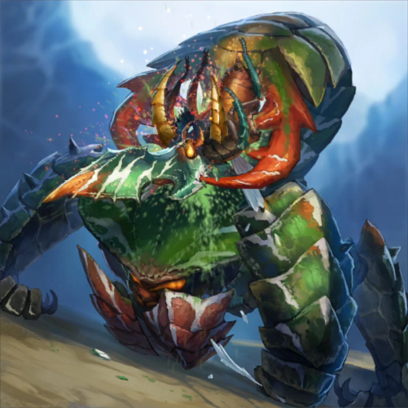 The spread of its golden wings should have heralded the start of the battle. Perhaps it was just an illusion that the monster seemed to be praying to the Goddess... moments before its massive claws came crashing down. | Type: Green Unit Cost: 5 MP Stats: 3 Attack/5 HP Effects: Spillover Faith Growth: 5 Lv. 2: Gain +1/+2. Lv. 3: Randomly distribute a total of 10 points between units' HP and your Hero's Life. Set No: MOR 085 |