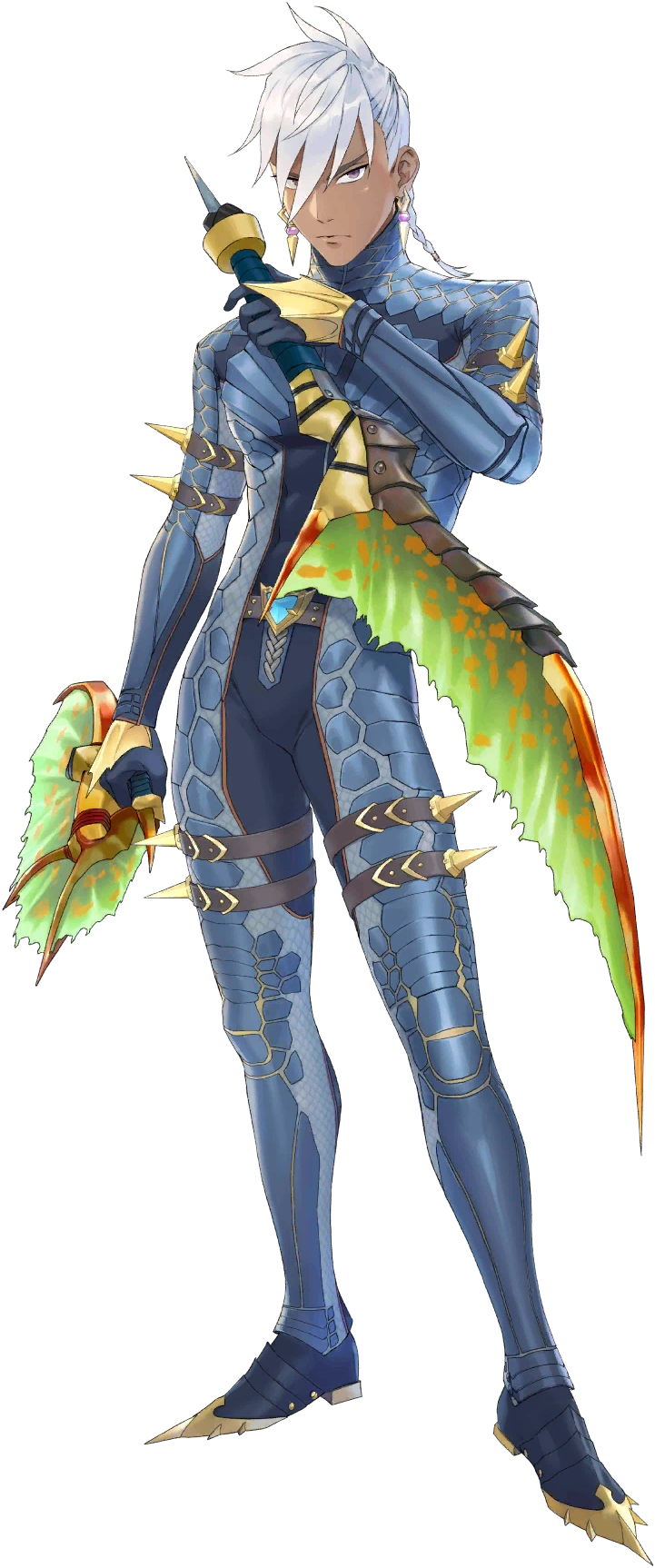 [Azure Flash] is an alternate form of Valvole, created in a collaboration with a mobile game Dragon Quest of the Stars. His outfit imitates Terry from Dragon Quest VI.