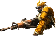 Though the Switch Axe came from the east, it is said that Mezeporta's Switch Axe F is based on an older model of the weapon, which came from the Ancient Civilization.